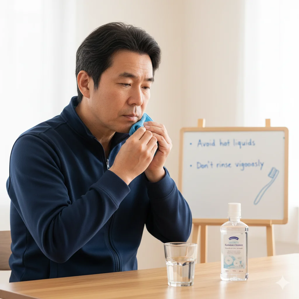 تورم صورت یا لثه بعد از جراحی شایع است و معمولاً در ۲۴ تا ۴۸ ساعت اول به اوج میرسد. استفاده از کمپرس سرد میتواند به کاهش تورم کمک کند.